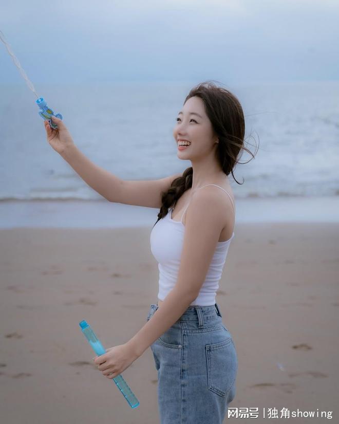 白色吊带紧身背心搭与宽松牛仔裤,很平常搭配,在美女高颜值的加持下,配合海边的场景,整体感觉如国,有种初恋的感觉,浪漫而唯美,白色纯棉紧身吊带时尚个性,显得格个净,现实穿搭中,像这种白色吊带,绝对是街头狂街的首选,就面料和款式而言,它穿着非常舒适,而且是紧身款式,能够完美的展现上身的曲线。