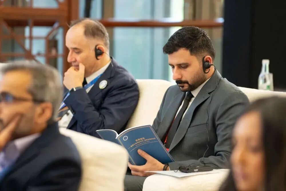9月7日,与会代表在2025全球南方媒体智库高端论坛上阅读《思想殖民——美国认知战的手段、根源及国际危害》智库报告 图源:新华社