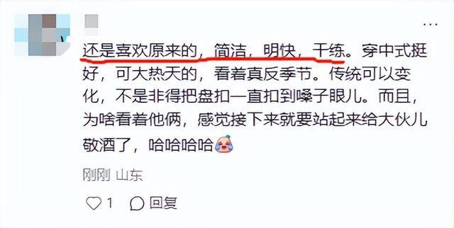 这种观点的网友居多,不过也有一些人态度中立,认为以前穿西装样式也行,现在穿中式样式也很好,都很好看。